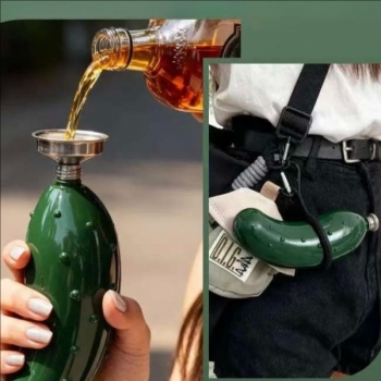 304 Stainless Steel Cucumber Shaped Mini Hip Flask, Portable Outdoor Liquor Alcohol Flask for Men, Unique Small Pocket Whiskey Flask for Camping & Travel