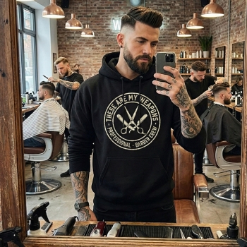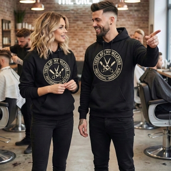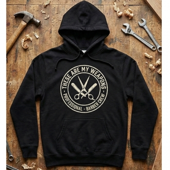 Barber Hoodie for Men & Women - "These Are My Weapons" Pullover - Funny Hairstylist & Barber Shop Crew Sweatshirt - Scissors Razor Graphic Gift