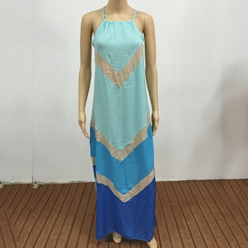 Bohemian Style Contrast Color Sleeveless Maxi Dress