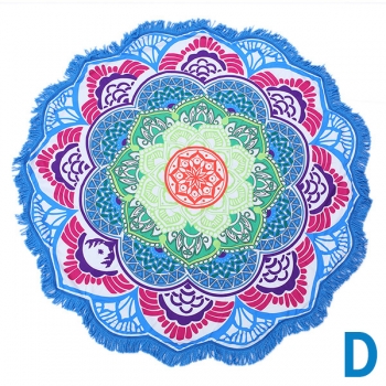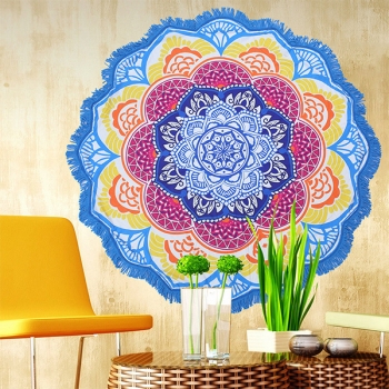 Bohemian Style Floral Printed Round Shape Beach Towel Cushion