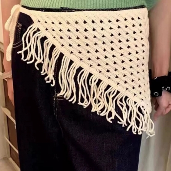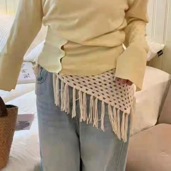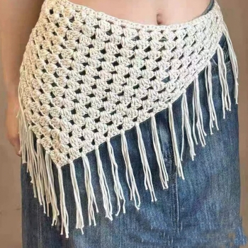 Boho Crochet Hip Scarf with Fringe - Festival Style Triangle Waist Belt