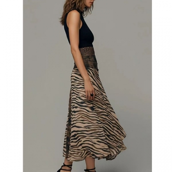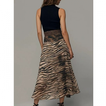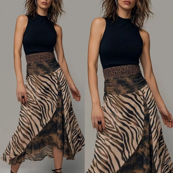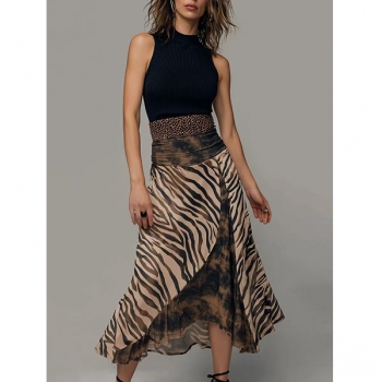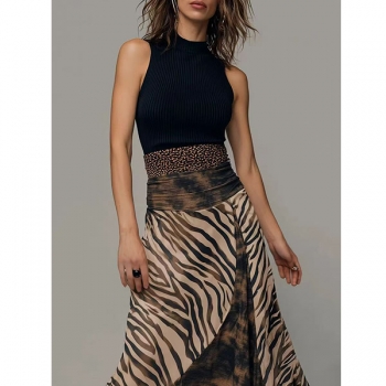 Boho-Luxe Mixed Animal Print Midi Dress – Ribbed Black Tank Top with Zebra & Leopard Skirt