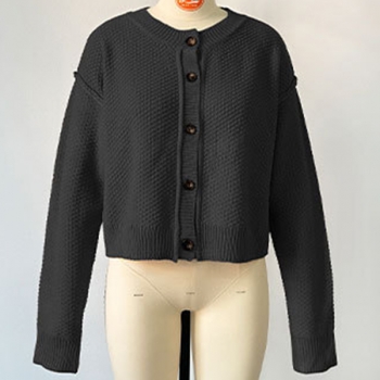 Casual Solid Color Long Sleeve Front Button Knitted Sweater
