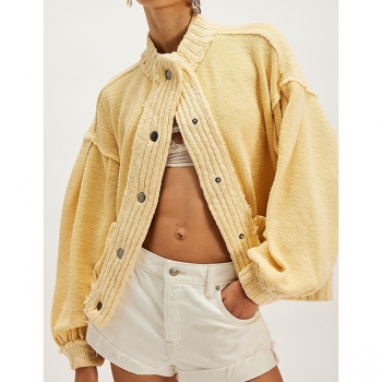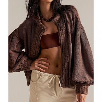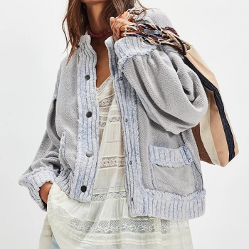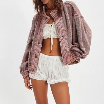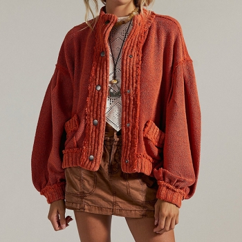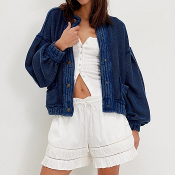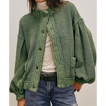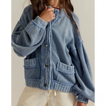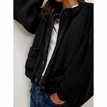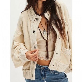 Casual Solid Color Long Sleeve Front Button Patch Pockets Cardigan