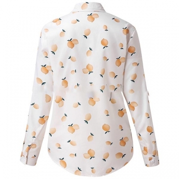 Casual Style Button Front Self-tie Hem Peach Print Long Sleeve Blouse
