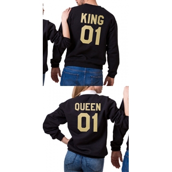Casual Style Gold Letters Printed Round Neck Long Sleeve Couple Sweatshirts