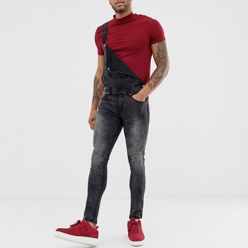 Casual Style High Waist Slim-fit Mans Denim Overalls