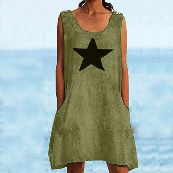 Casual Style Pentagram Printed Sleeveless Loose Dress
