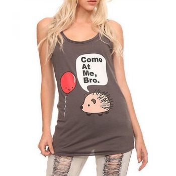 Cute Cartoon Printed Sleeveless Round Neck T-shirt