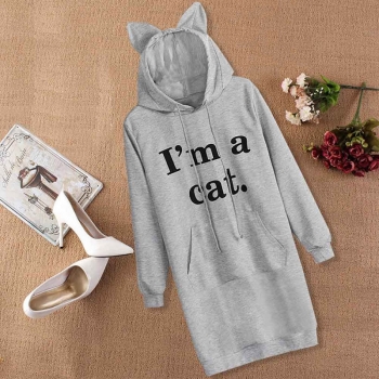 Cute Letters Printed Long Sleeve Cat Ear Shaped Hooded Sweatshirt Dress