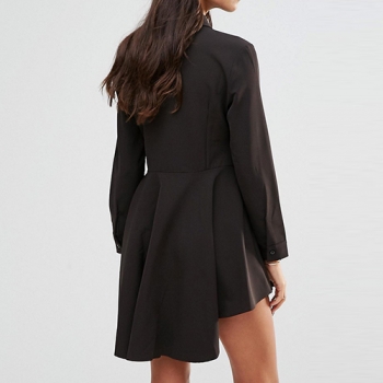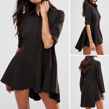 Elegant Solid Color Long Sleeve POLO Collar Dovetail Hem Shirt Dress