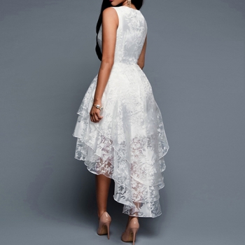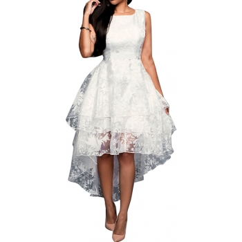 Elegant Solid Color Round Neck Sleeveless Layered High-low Dress(It falls small)