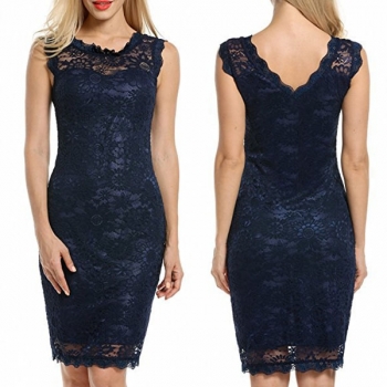 Elegant Solid Color Sleeveless Round Neck Slim Fit Lace Dress