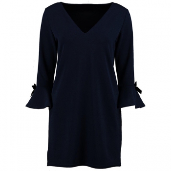Elegant Solid Color Trumpet Sleeve V-neck Dress