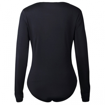 Fashion Colored Ribbon Spliced Long Sleeve Round Neck Bodysuit