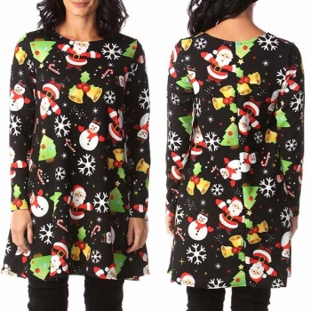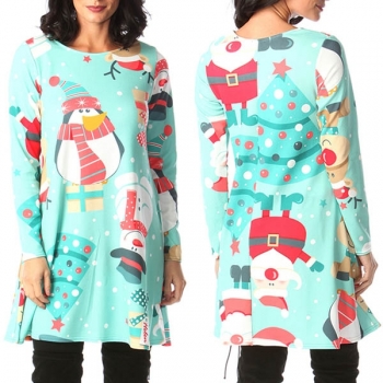 Fashion Colorful Printed Long Sleeve Round Neck Dress