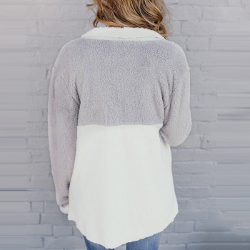 Fashion Contrast Color Lapel Collar Long Sleeve Thick Cardigan