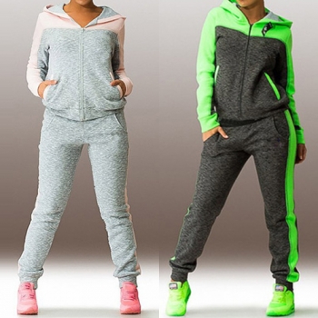 Fashion Contrast Color Long Sleeve Hooded Sports Suit