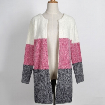 Fashion Contrast Color Long Sleeve Knit Cardigan