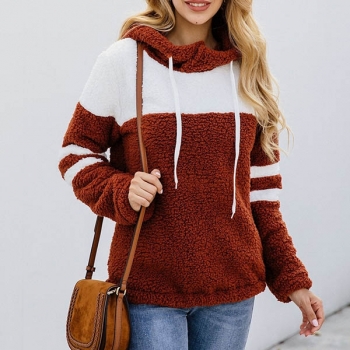Fashion Contrast Color Long Sleeve Plush Hoodie