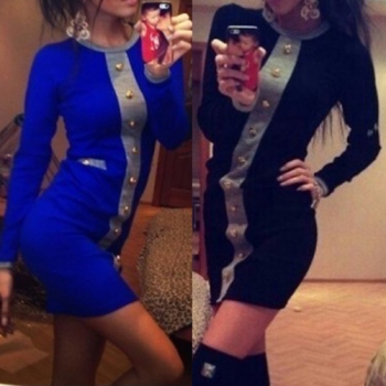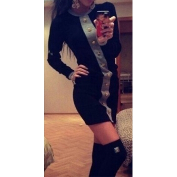 Fashion Contrast Color Long Sleeve Round Neck Slim Fit Dress