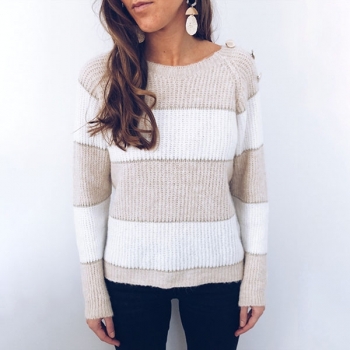 Fashion Contrast Color Long Sleeve Round Neck Sweater
