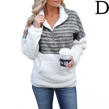 Fashion Contrast Color Long Sleeve Stand Collar Plush Sweatshirt