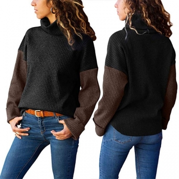 Fashion Contrast Color Long Sleeve Turtleneck Sweater