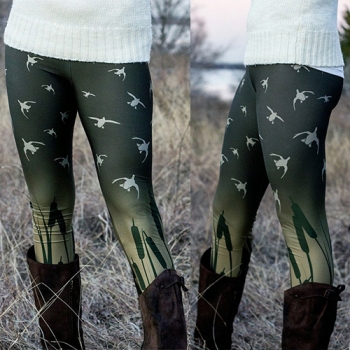 Fashion Digital Birds Printed Slim Fit Stretch Pants