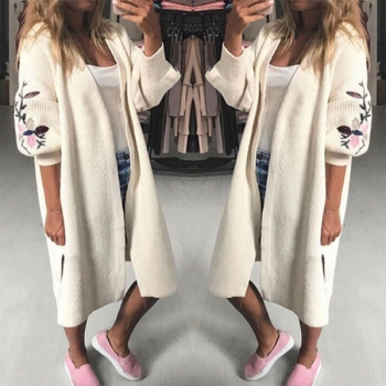 Fashion Embroidered Lantern Sleeve Solid Color Knit Cardigan