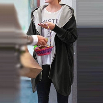 Fashion Front Zipper Hooded Long Sleeve Irregular Hemline Women's Trench Coat