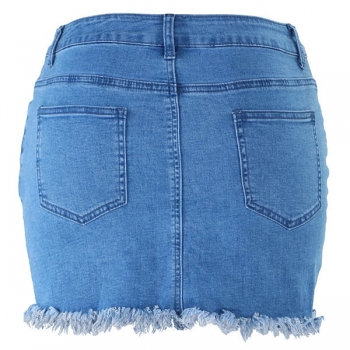 Fashion High Waist Tassel Hem Denim Skirt