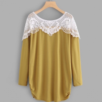 Fashion Lace Spliced Long Sleeve Round Neck Loose T-shirt