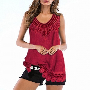 Fashion Lace Spliced Sleeveless Round Neck Solid Color Tank Top