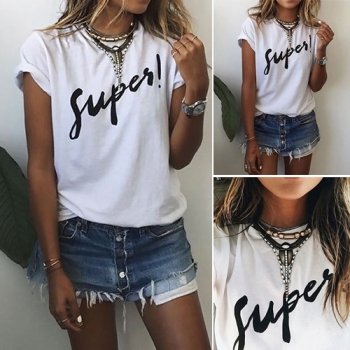 Fashion Letters Printed Short Sleeve Round Neck Casual T-shirt