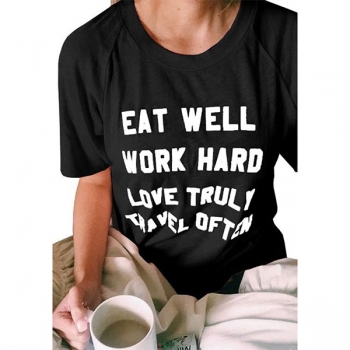 Fashion Letters Printed Short Sleeve Round Neck T-shirt