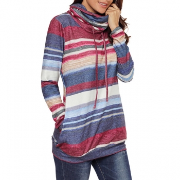 Fashion Long Sleeve Cowl Neck Colorful Striped Sweatshirt