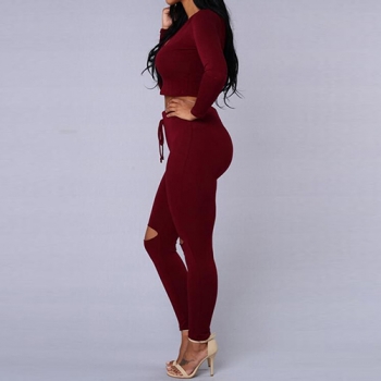 Fashion Long Sleeve Hooded Crop Tops + High Waist Pants Two-piece Set