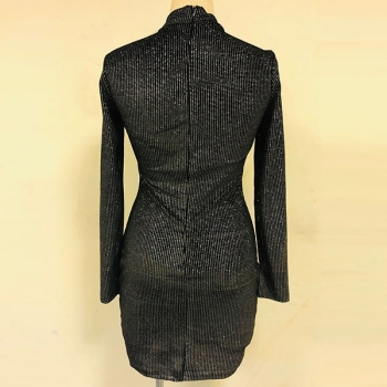 Fashion Long Sleeve Mock Neck Slim Fit Sequin Dress