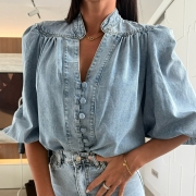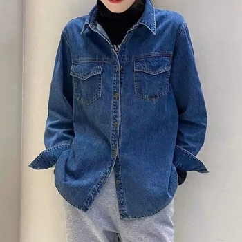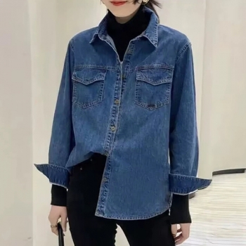 Fashion Long Sleeve POLO Collar Denim Shirt