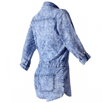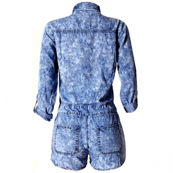 Fashion Long Sleeve POLO Collar High Waist Denim Romper