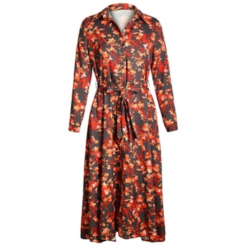 Fashion Long Sleeve POLO Collar Printed Shirt Dress