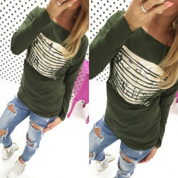 Fashion Long Sleeve Round Neck Bronzing Printed T-shirt