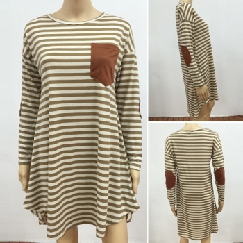 Fashion Long Sleeve Round Neck Irregular Hem Striped Dress