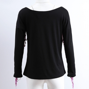 Fashion Long Sleeve Round Neck Sequin Tassel T-shirt