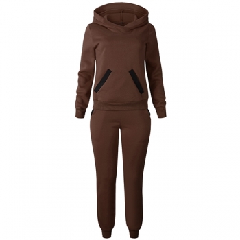 Fashion Long Sleeve Slim-Fit Hoodie+Pants Contrast Color Trim Sport Two Piece Set