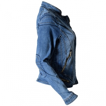 Fashion Long Sleeve Stand Collar Zipper Pocket Denim Jacket