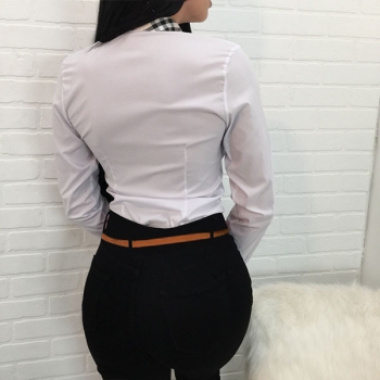 Fashion Plaid Spliced Long Sleeve POLO Collar Slim Fit Shirt