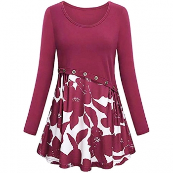 Fashion Printed Spliced Hem Long Sleeve Round Neck T-shirt Dress