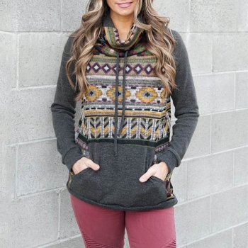 Fashion Printed Spliced Long Sleeve Cowl Neck Sweatshirt